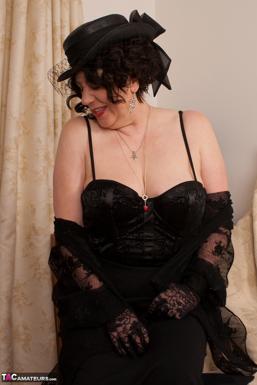 From deep in our archives this set was shot back in January 2010, Auntie Trisha was wearing her Black Basque with a long black Skirt and her new hat, more...ut once her skirt is off its time to play and her panties are soon off and her tits are out, and after fingering and spreading her pussy its time to finish off with her vibrator.