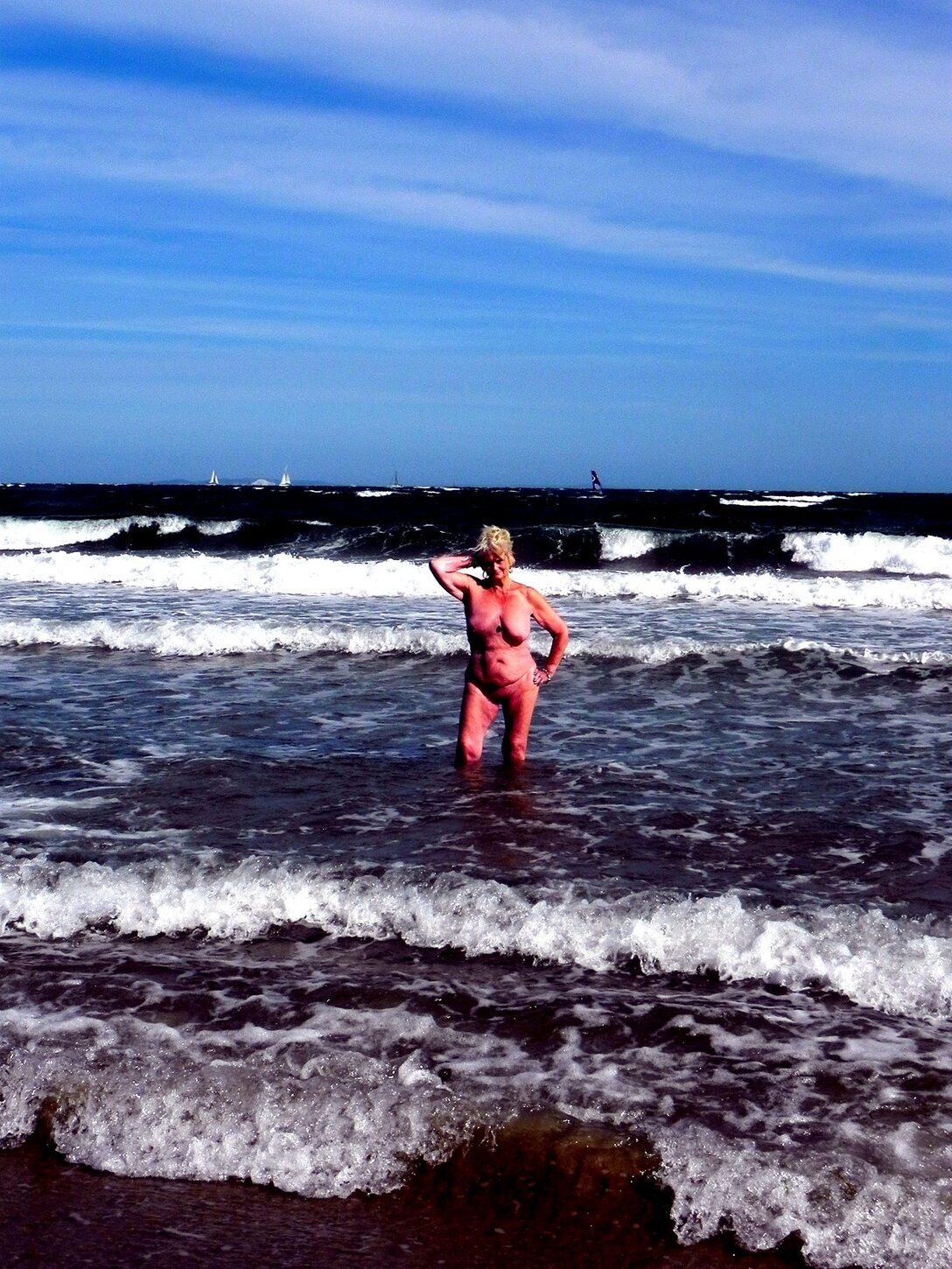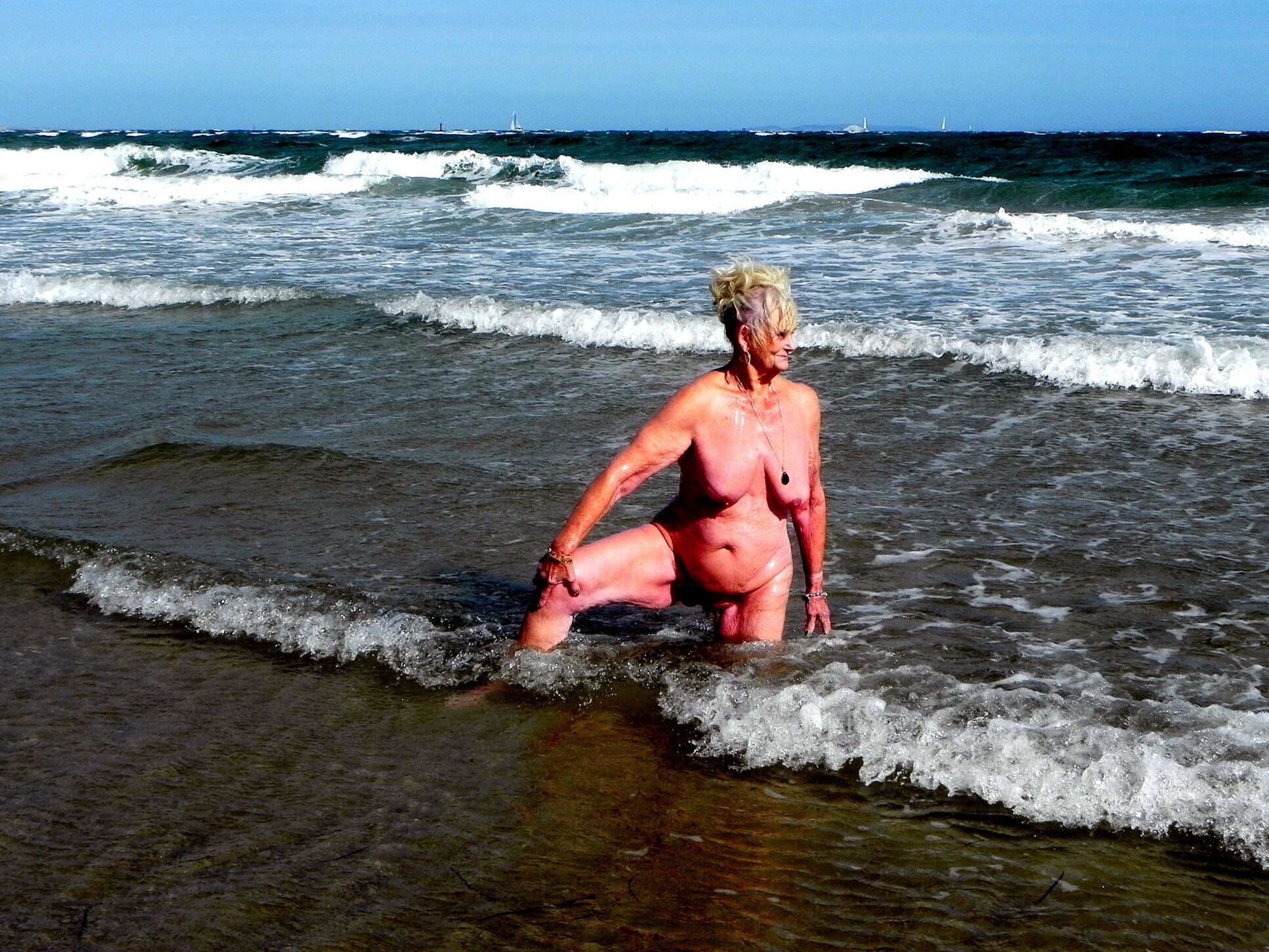 At a nudist retreat I come out of my caravan to sunbath naked.