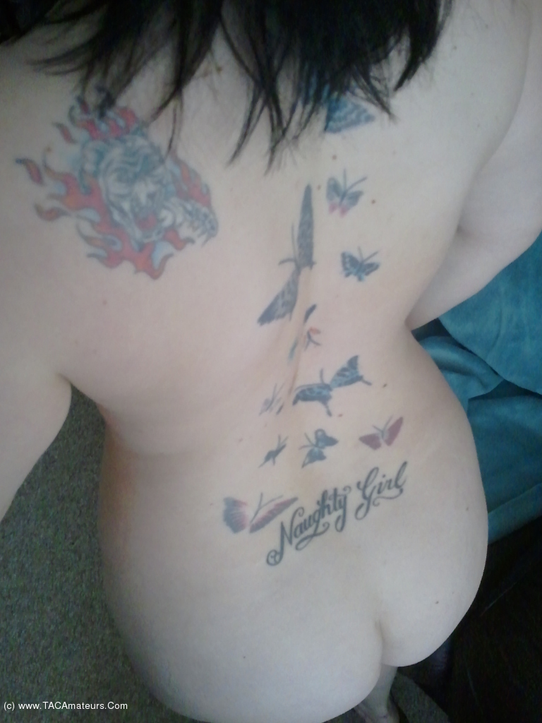 Here's me, trying out the Goth look. Black lipstick and nothing else except, my heels and my big juicy ass xx