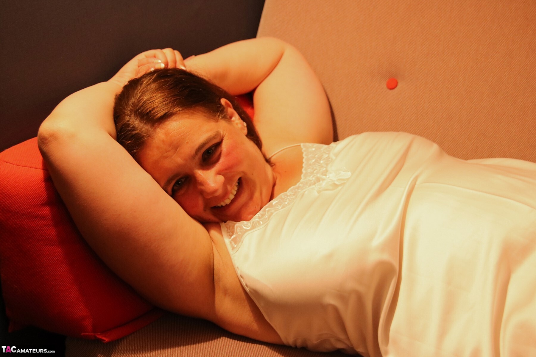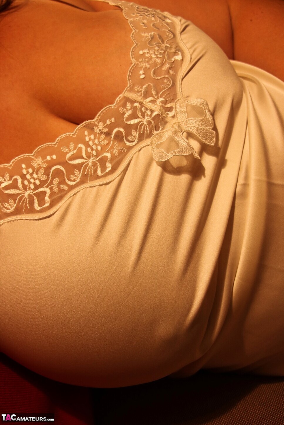 Cuddle Cheeky Dee is on her bed in a dressing gown and nighty she then strips naked.