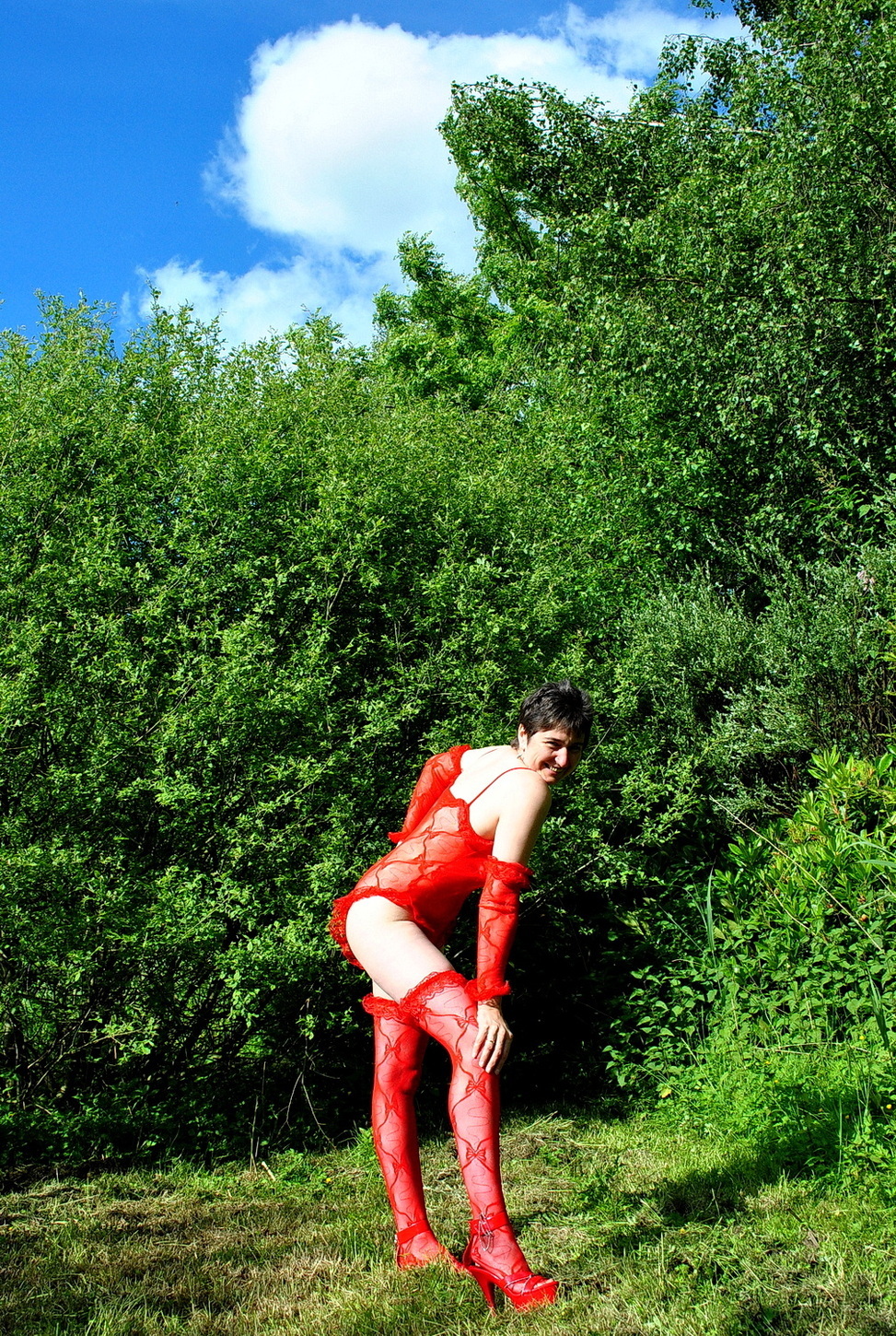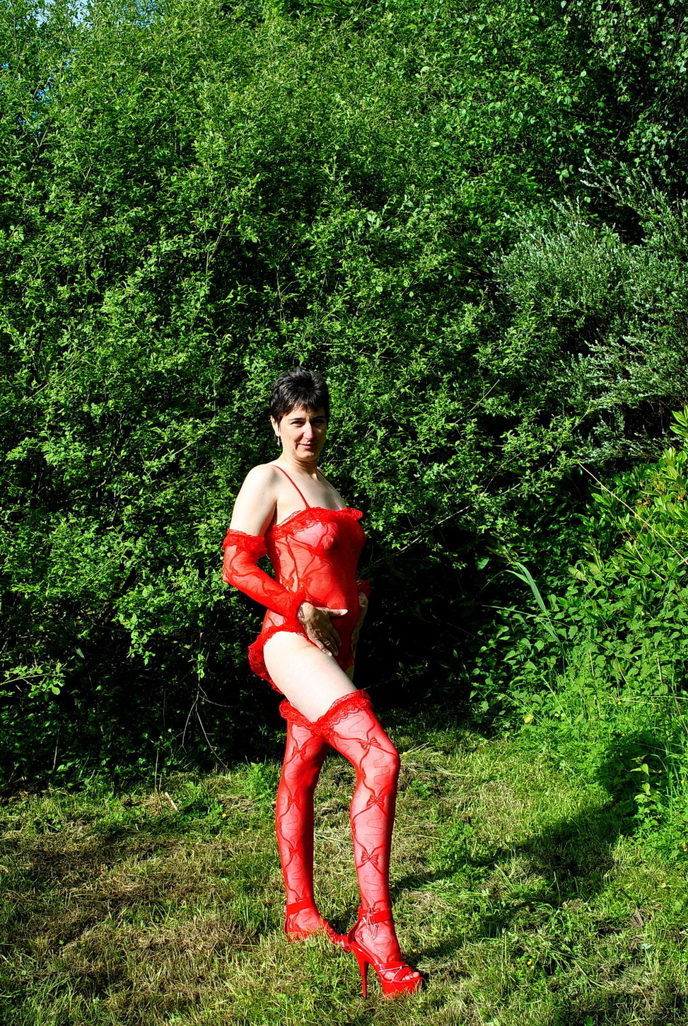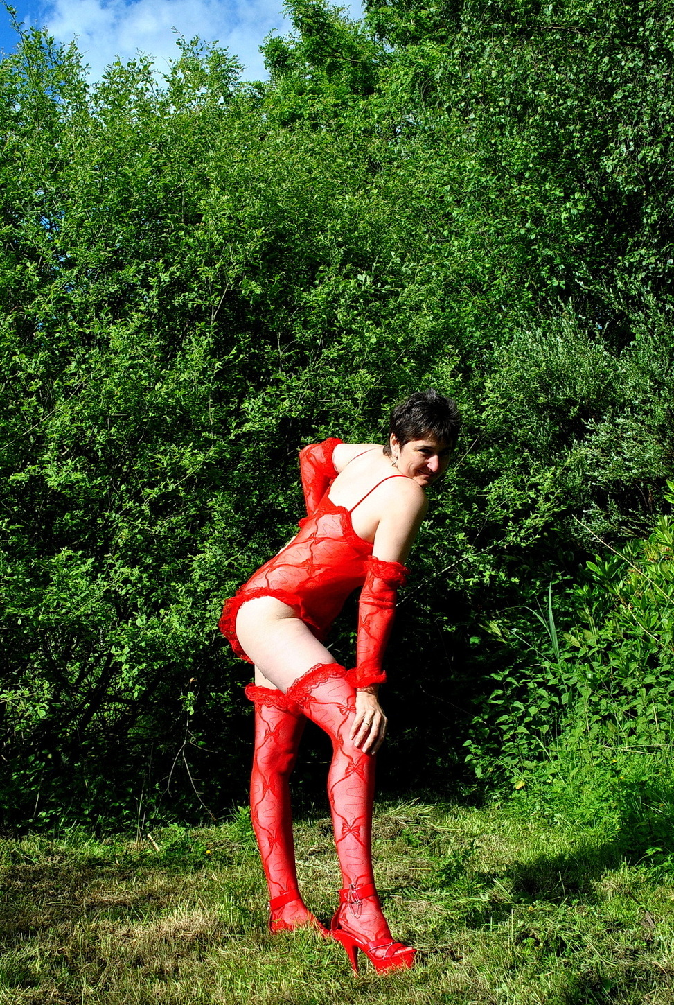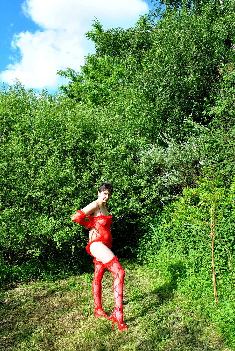 We also take hot pictures for you when were on vacation.Like here in the red body on the stairs.Well, Ill do a hot strip...