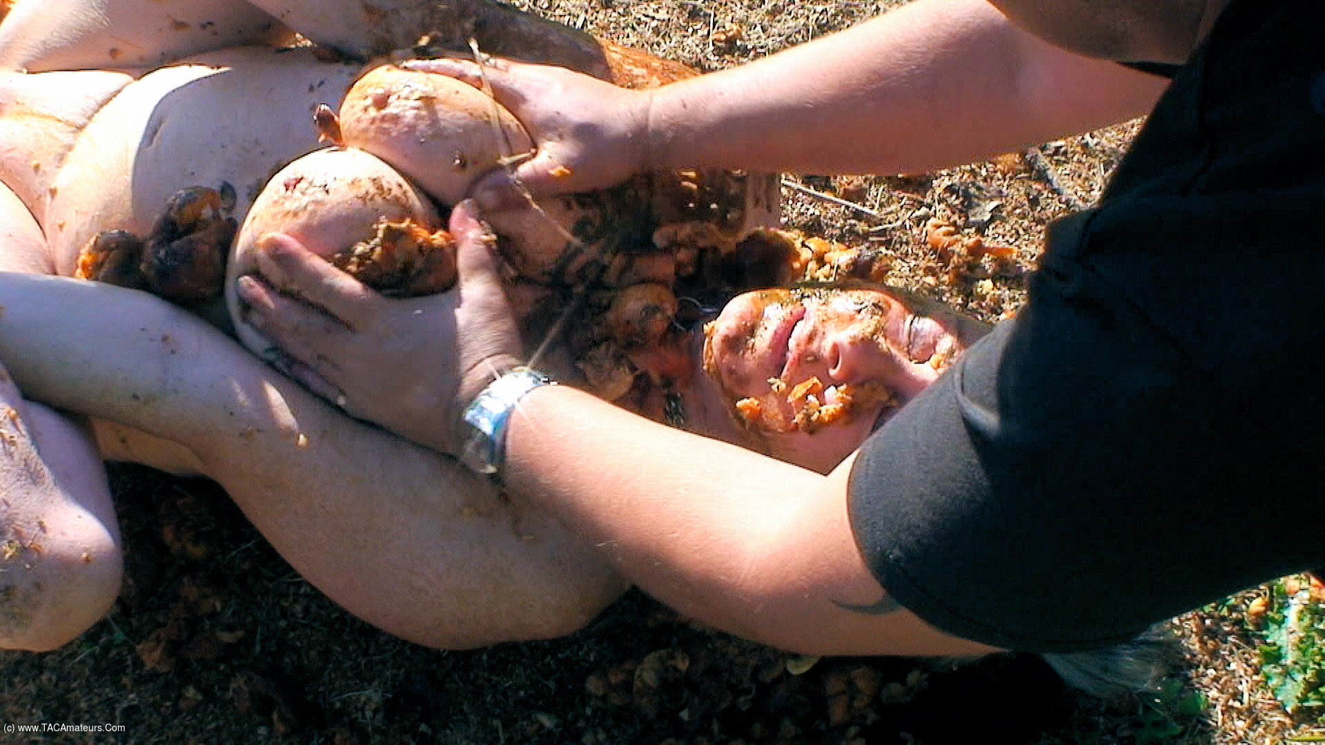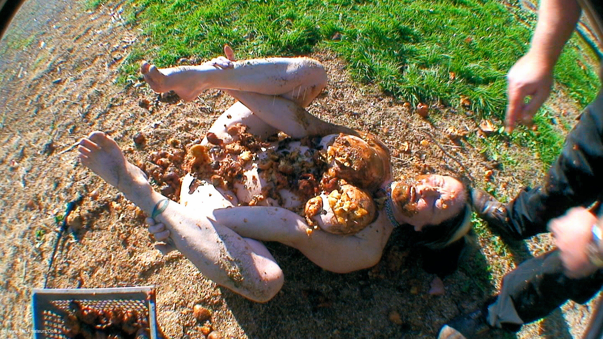 I love being humiliated in really trashy games, so my master picked up the rotten apples, he smeared my face and body wi...