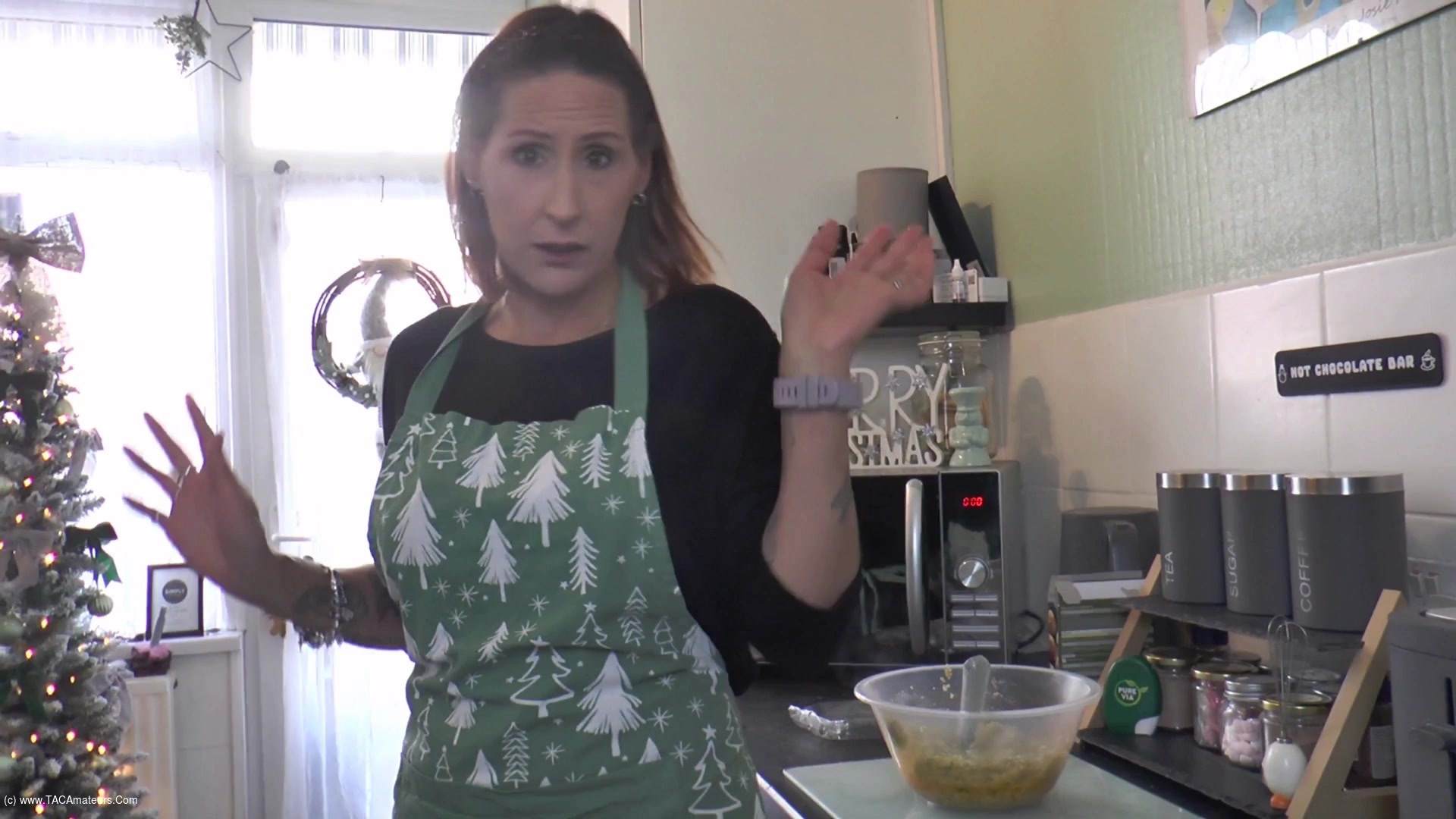 Preparing a beautiful thanksgiving meal while the rest of the family are out having a drink, my stepson shows up and joins me in the kitchen, he loves more...watching me cook.